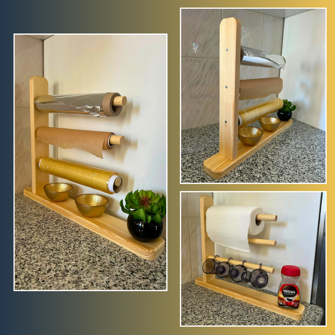 حامل اوراق المطبخ خشبي 3 في1 - porte rouleaux cuisine